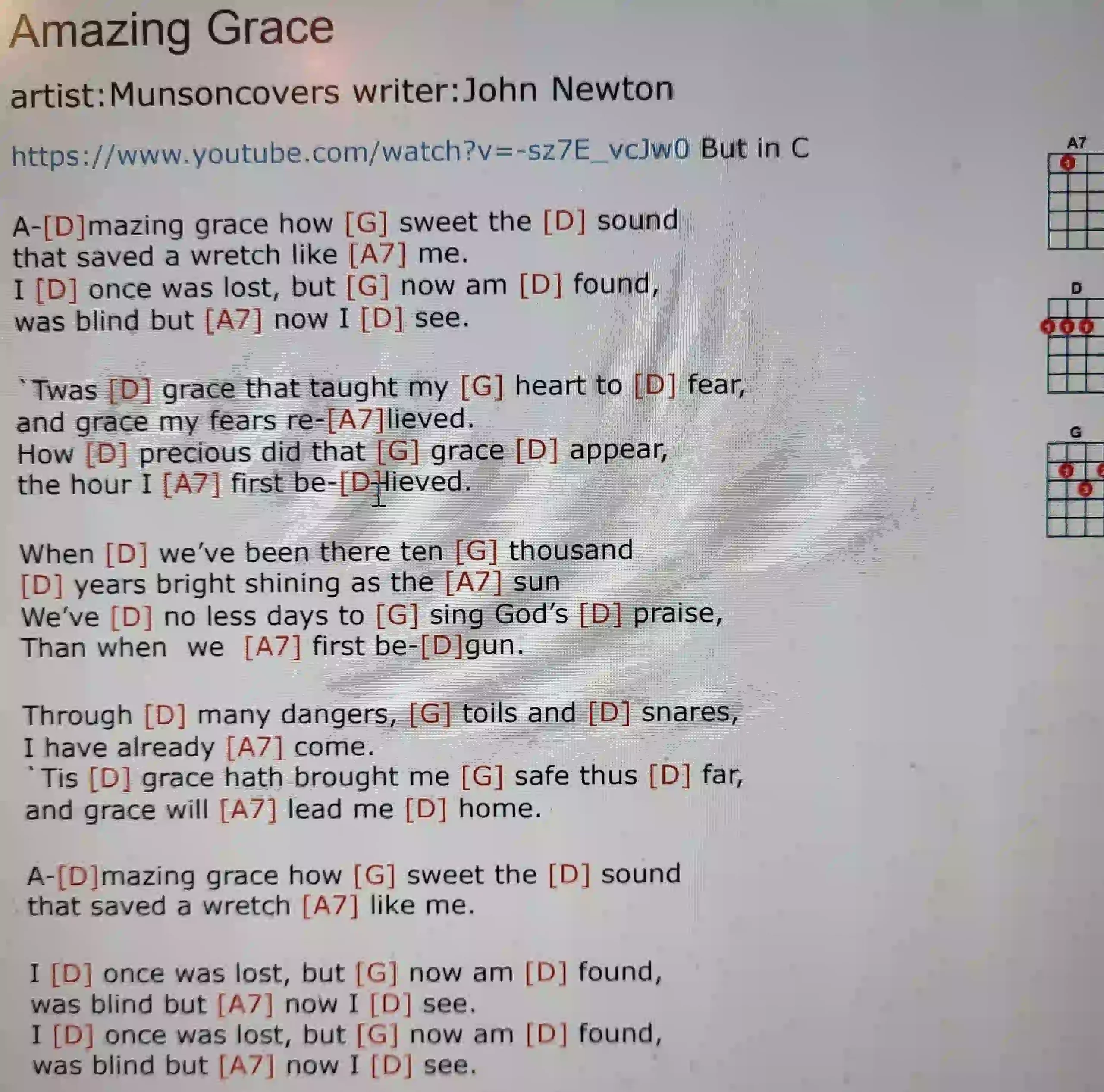 Amazing Grace ( D G )