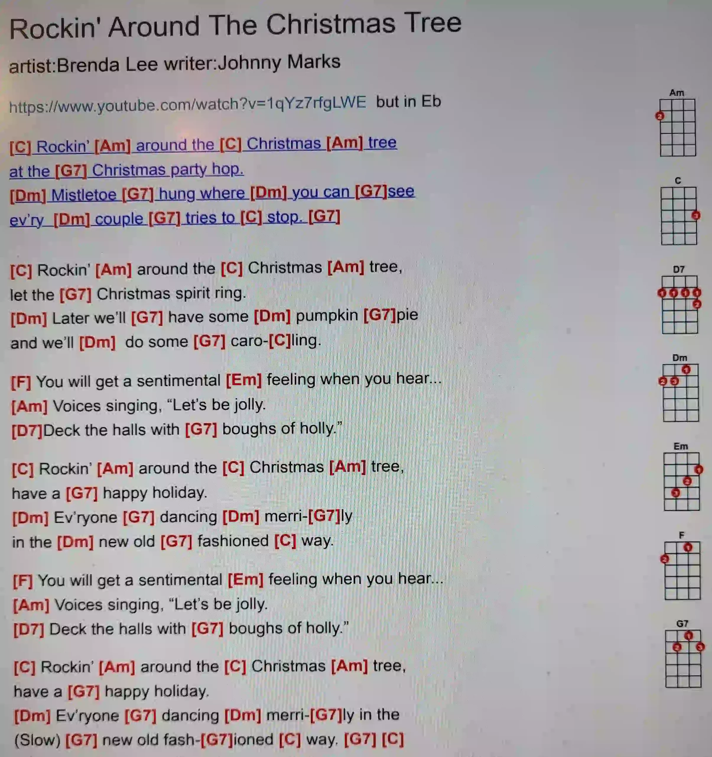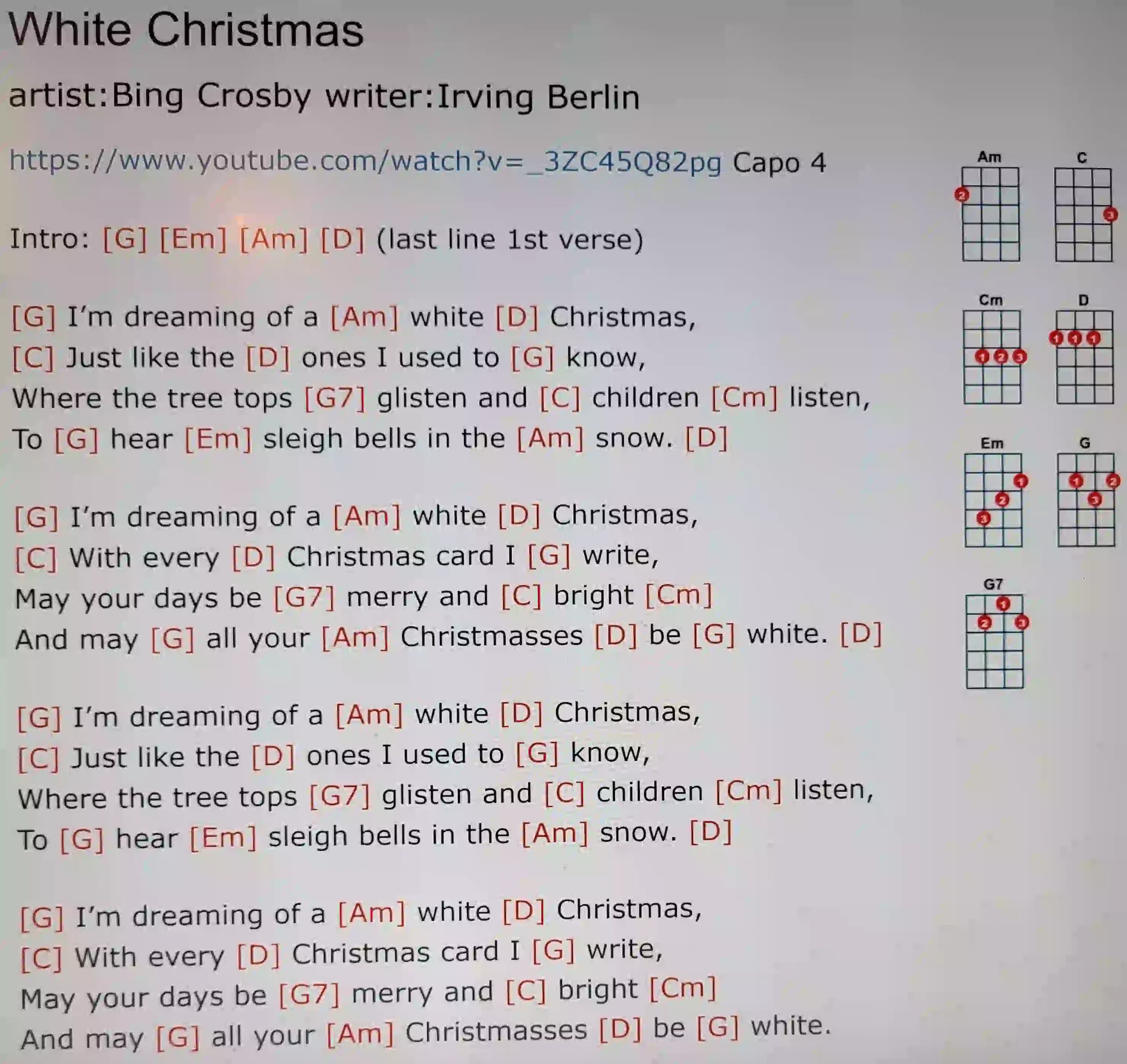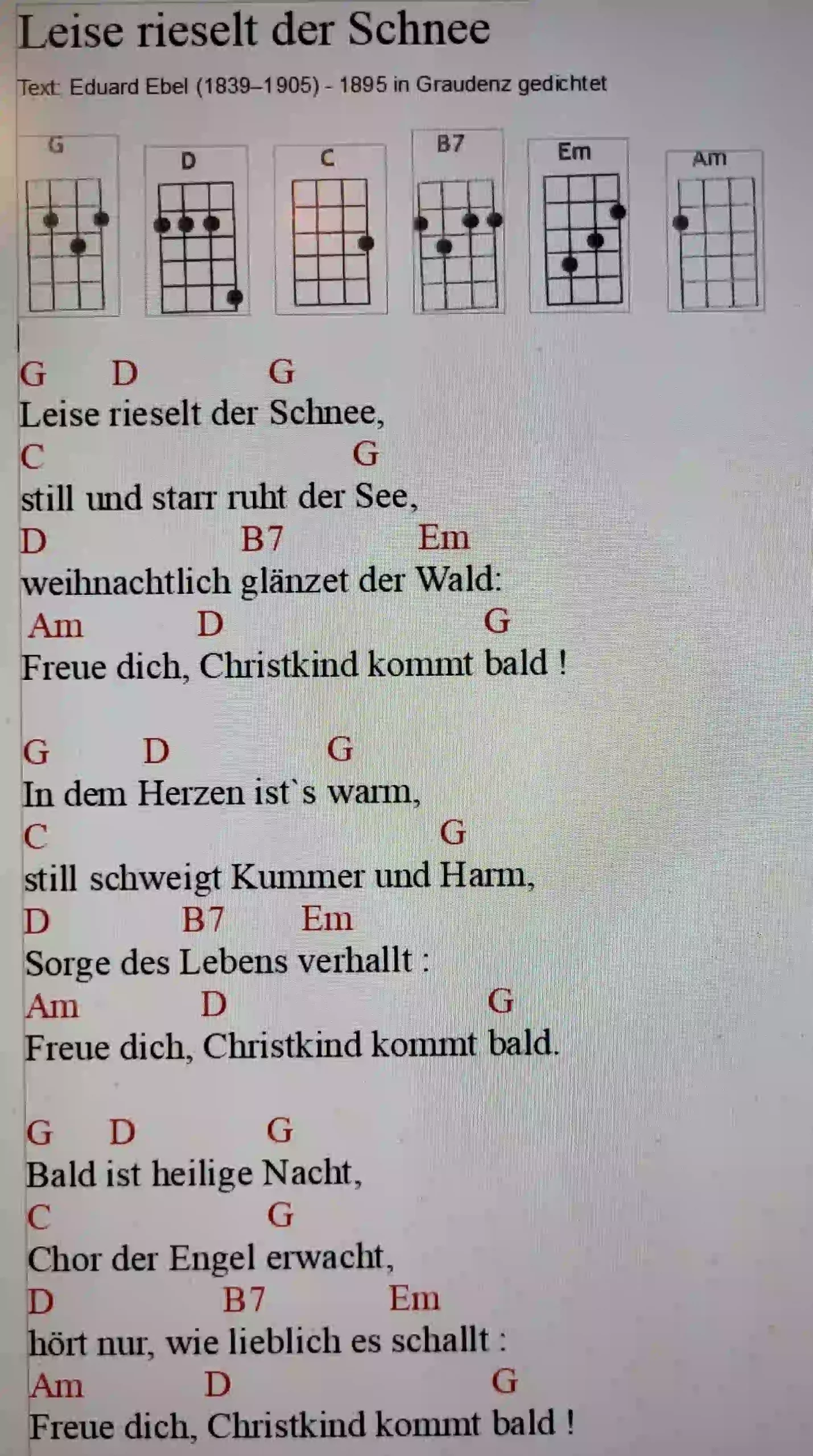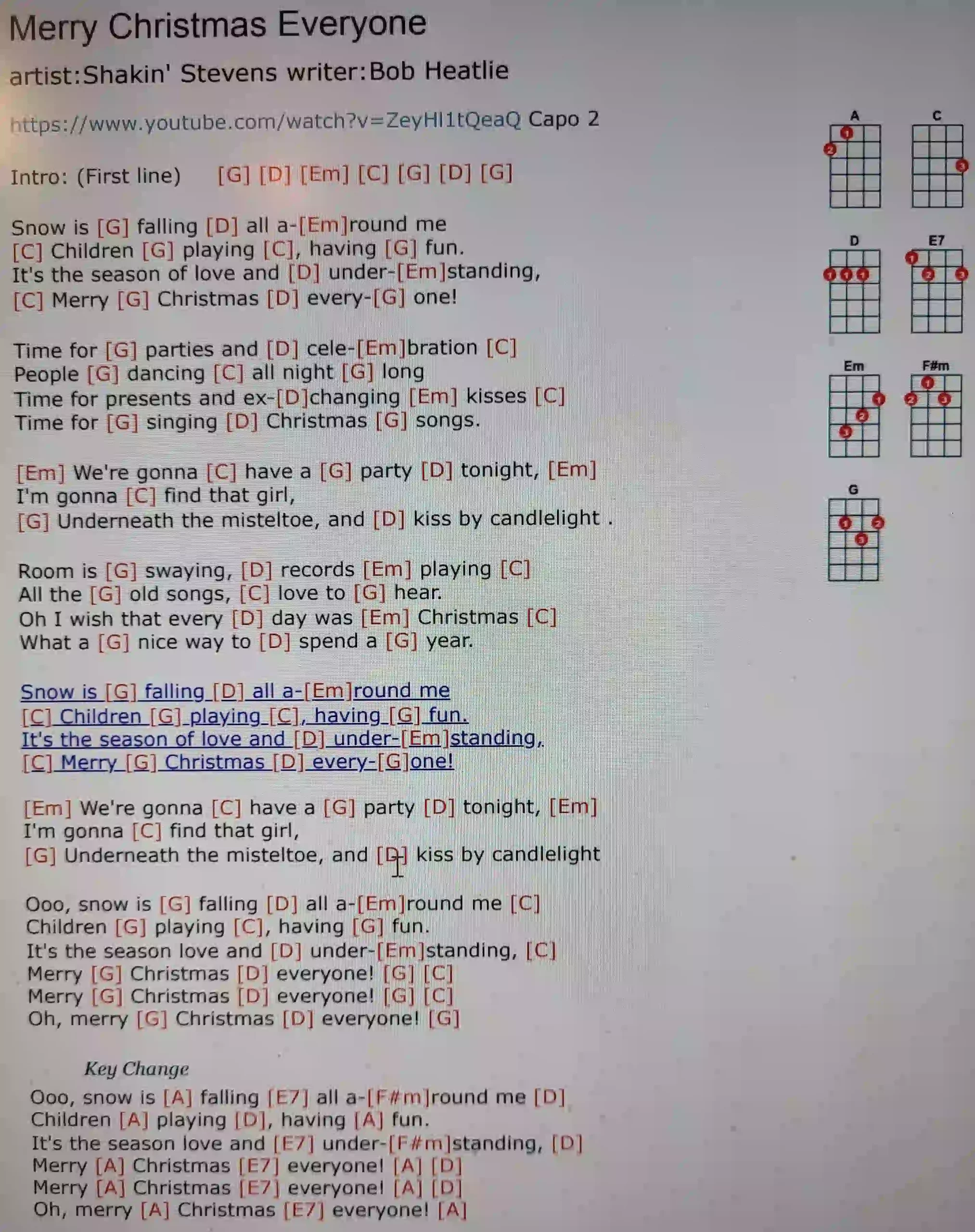 b) Merry Christmas Everyone – Snow is falling (G D Em)