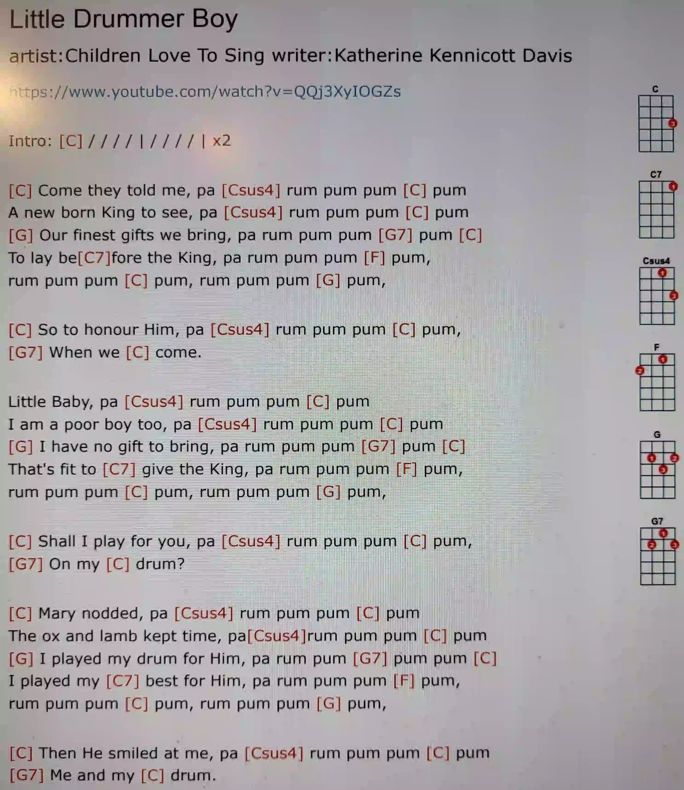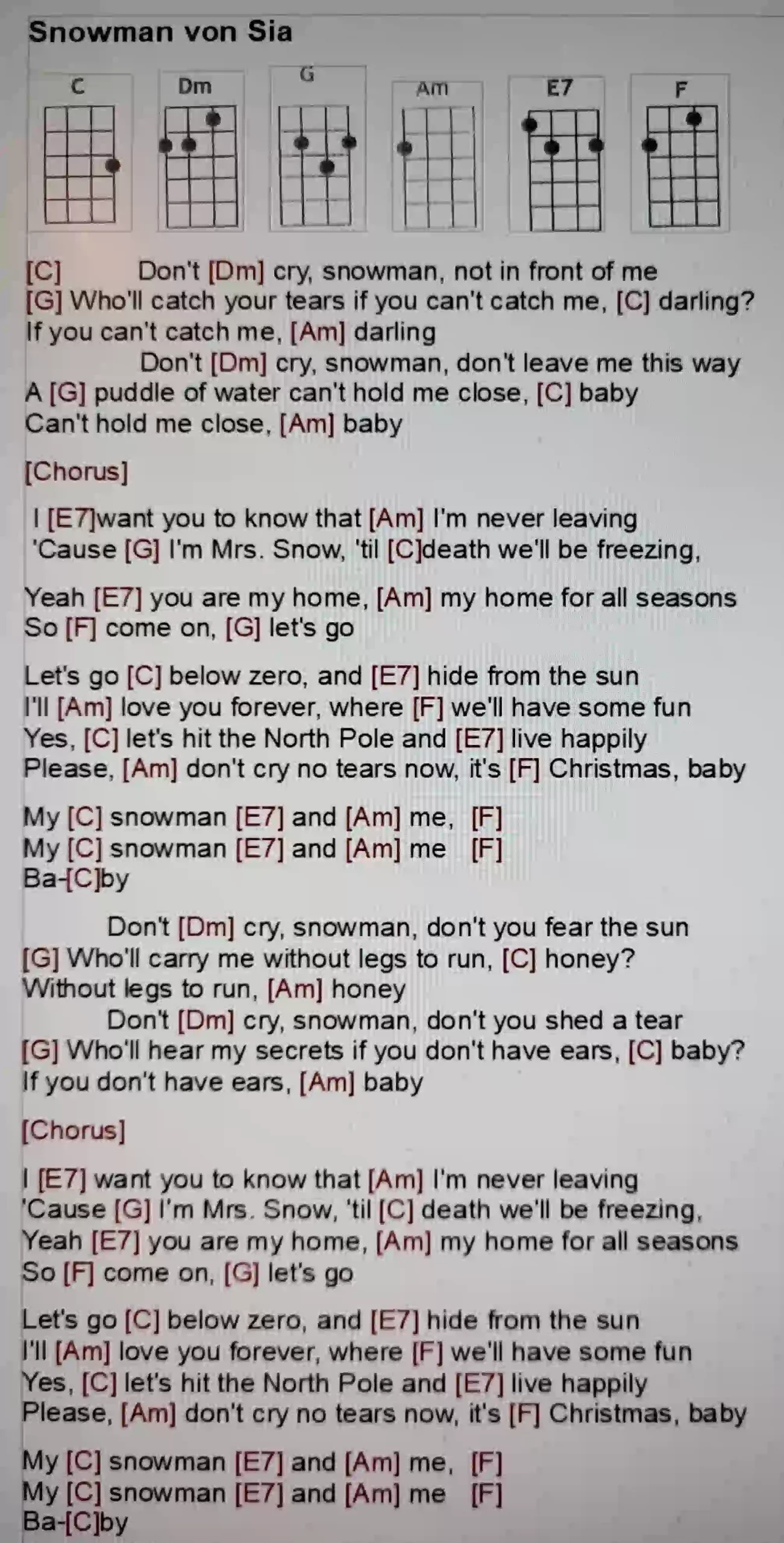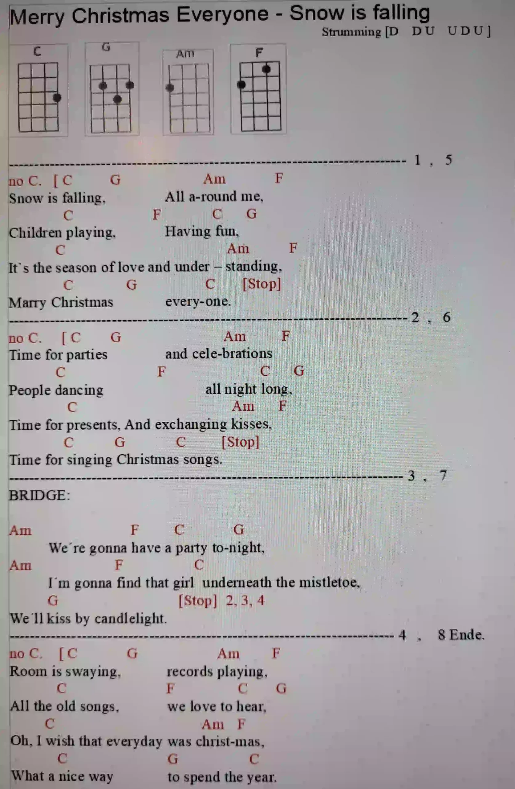a) Merry Christmas Everyone – Snow is falling (C G F)