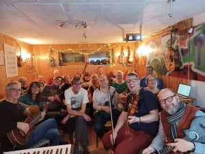Alle Jahre wieder findet das Adventssingen statt. Gespielt und gesungen werden überwiegend Weihnachtslieder. Neben den Ukulelen bekommen auch andere Instrumente die Chance zu erklingen. Wer kein Instument spielen möchte, singt einfach mit. Die Teilnehmer wurden mit Kinderpunsch oder mit Glühwein versorgt.